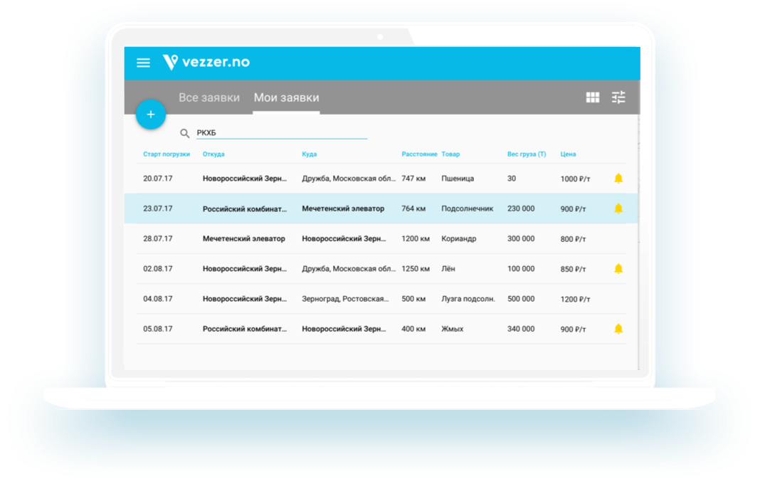 Работа напрямую с перевозчиком | Перевозка через платформу VEZZERNO | |