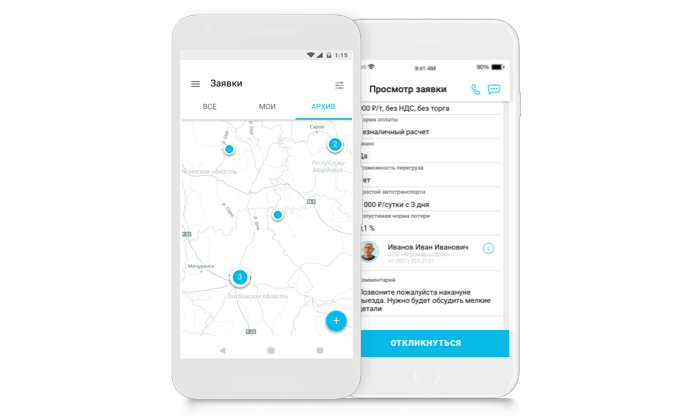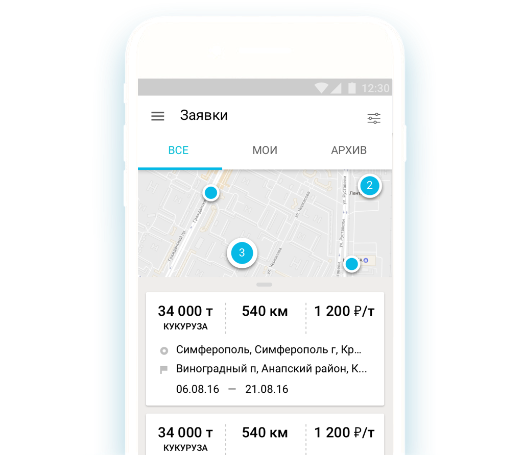 Возможность показать свой свободный транспорт на карте потенциальным заказчикам |